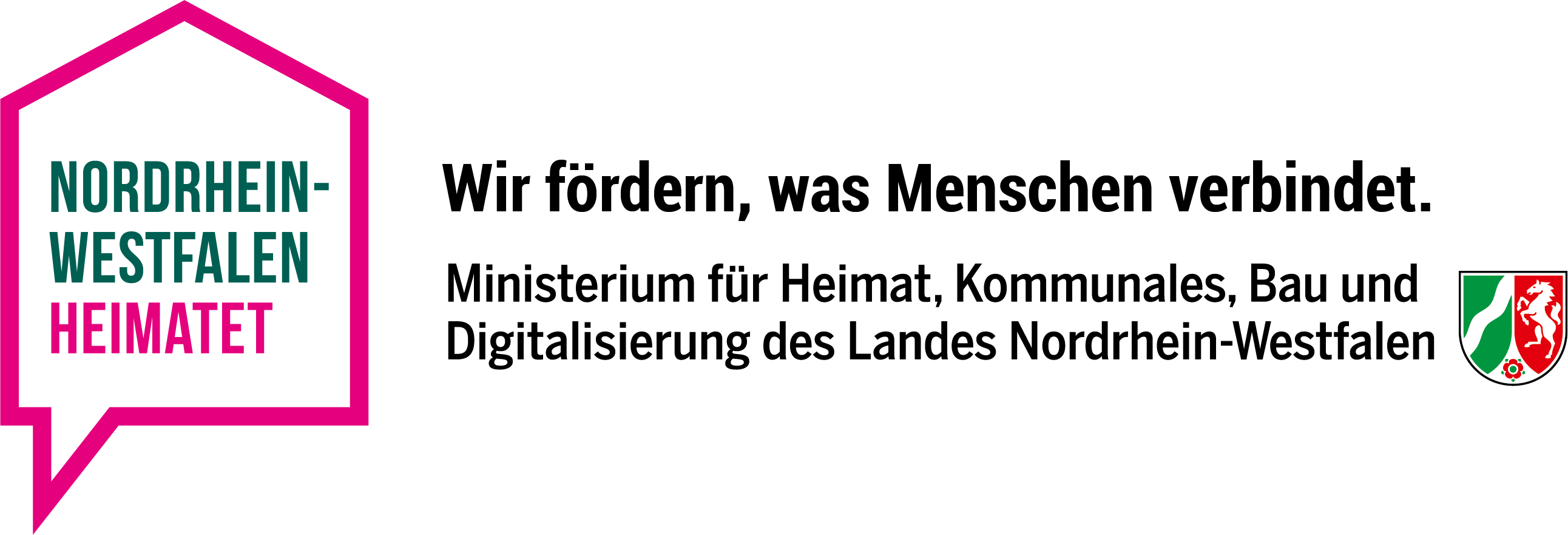 Die Erstellung dieser Homepage wurde unterstützt vom Ministerium für Heimat, Kommunales, Bau und Digitalisierung des Landes Nordrhein-Westfalen im Zuge des Förderprogramms Heimat. Zukunft. Nordrhein-Westfalen. Wir fördern, was Menschen verbindet.