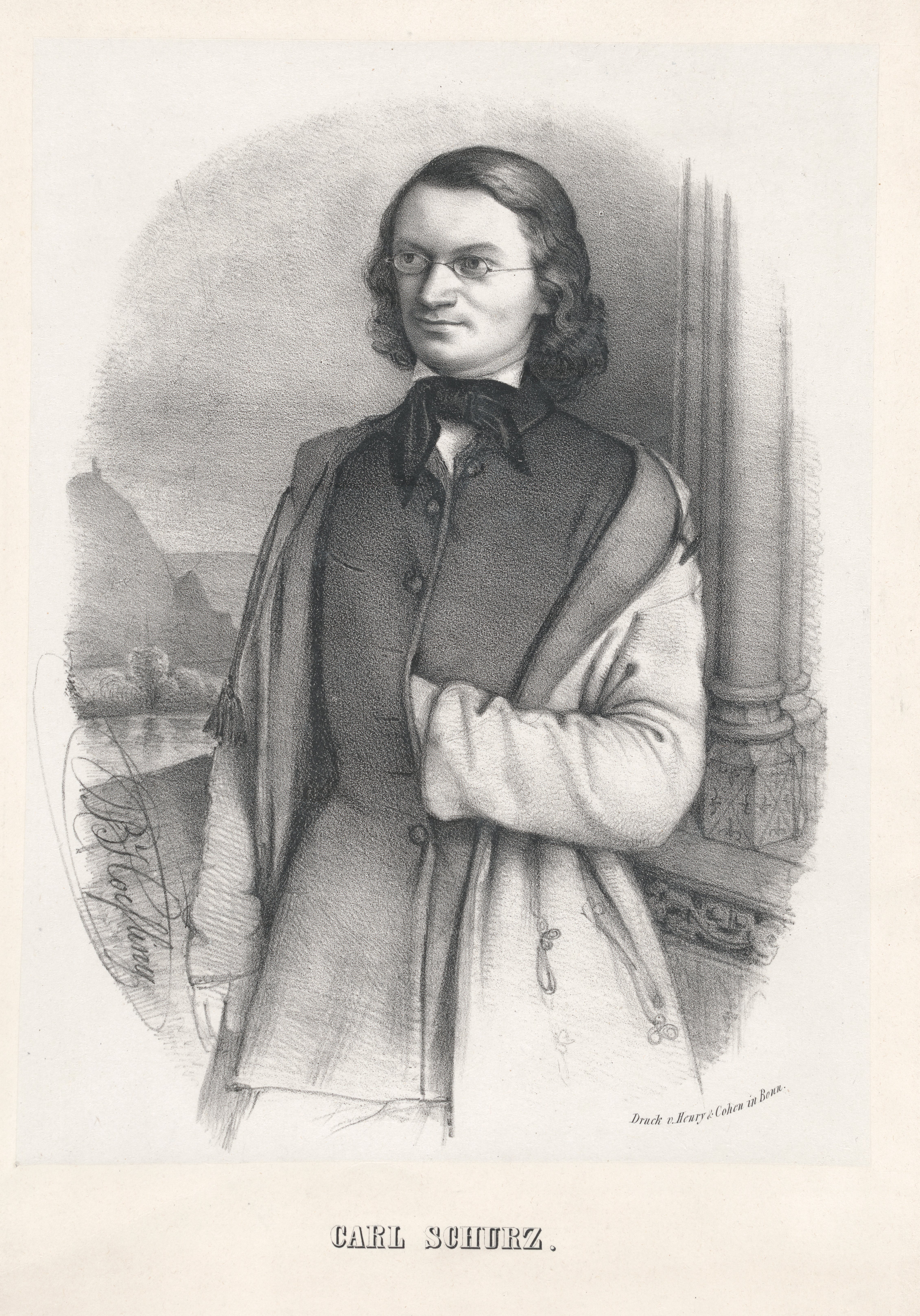 Thomas Wolf, www.foto-tw.de, CC BY-SA 3.0, via Wikimedia Commons1847 immatrikuliert sich Carl Schurz an der philosophischen Fakultät der Bonner Universität. Er nimmt an Vorlesungen von Professor Gottfried Kinkel (1815–1882) teil, mit dem er sich später anfreundet. Schurz lernt auch dessen Frau kennen, die Komponistin Johanna Kinkel (1810–1858).
